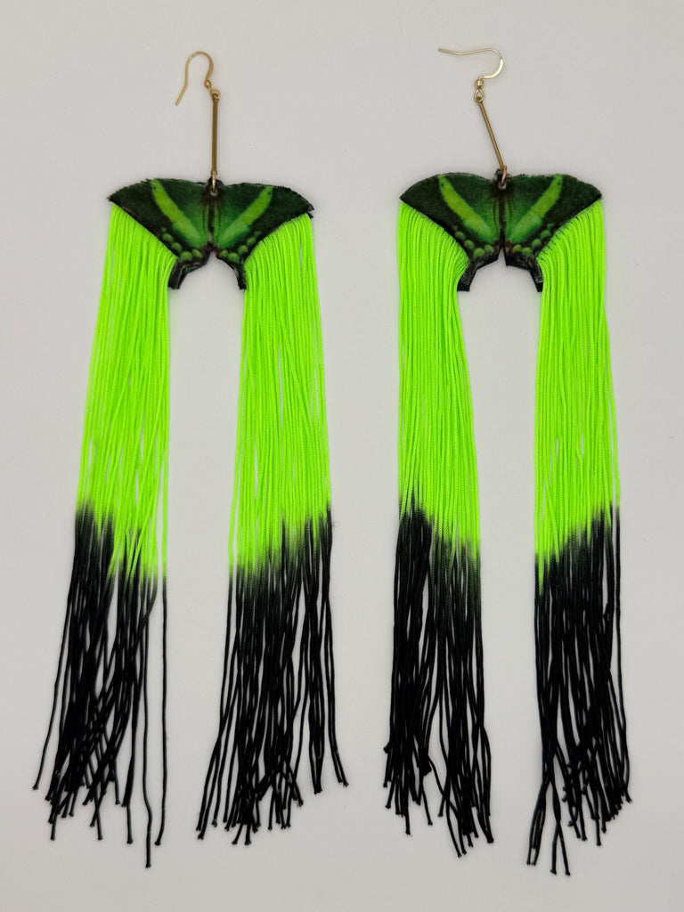 Small green and black butterflies with black to neon chartreuse 8" Fringe - $50.00