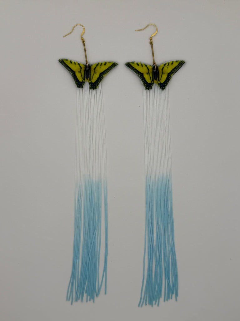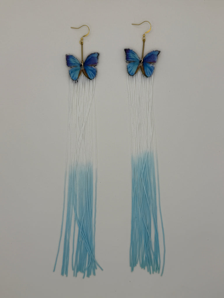 Blue Butterflies with Blue Ombre 8" Fringe - $50.00
