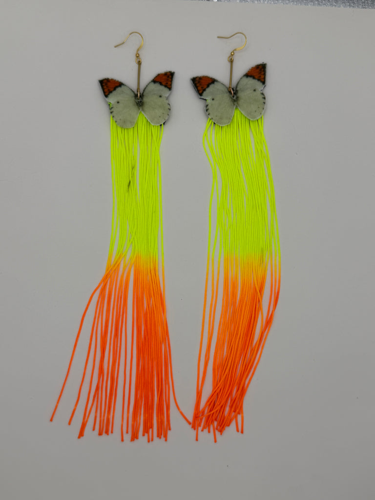 Butterflies with neon yellow and neon orange 8" Fringe - $45.00