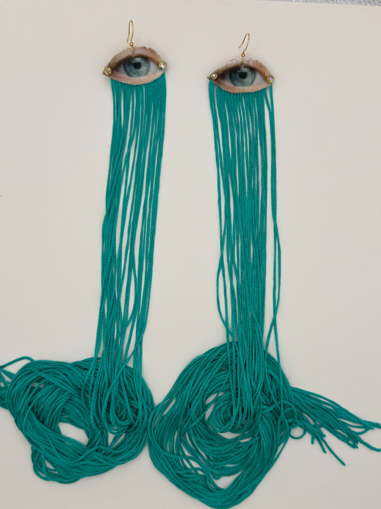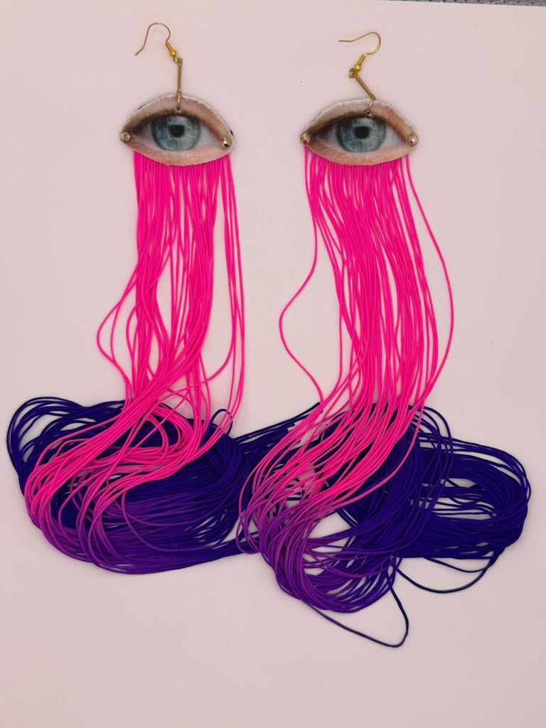 Neon Pink and Purple Fringe with Green Eye - $60.00