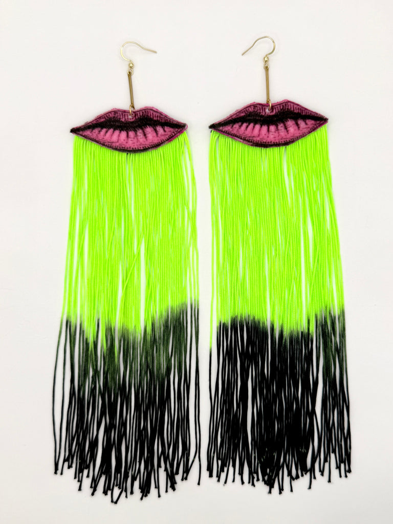 Velvet Lip Earrings with 8" Fringe (Multiple Color Options)